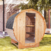 - Outdoor sauna: 59.06*70.87*70.87 Inch, 6’x6’suitable for 4-5 person outdoor sauna. This outdoor round barrel sauna for 4-5 people offers ample space for expansion. Made of natural Finnish carbonized spruce wood, it features a unique drum design that better maintains the internal temperature of the sauna and enhances the sauna experience. The warm wooden interior creates an authentic Finnish sauna experience.
