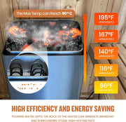 - Sauna includes all: Comes with 4.5KW heating furnace and our sauna room reaches the desired temperature in just 25-35 minutes. Our product is equipped with an LED explosion-proof lamp, a wooden cover, a stove frame, a wooden bucket, a wooden spoon, a thermometer and hygrometer, an hourglass, volcanic stones, two wooden teacup holders, two speakers, and so on.